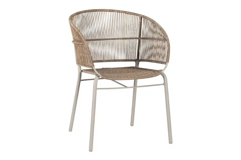 Introductie Max & Luuk Kane Tuinstoel LinennHet Max & Luuk Kane Tuinstoel Linen van Fonteyn brengt moderne elegantie naar jouw buitenruimte. Deze designstoel combineert vakmanschap met tijdloze vormgeving, waarbij het kenmerkende handgeweven rotan patroon in natuurlijke beige tinten zorgt voor een opvallende verschijning. Het gepoedercoate stalen frame met subtiele beige afwerking vormt de perfecte basis voor het verfijnde vlechtwerk dat deze tuinstoel zijn unieke karakter geeft.nnElegante uitstraling die indruk maaktnKane Linen straalt pure sophisticatie uit door zijn doordachte ontwerp. De halfronde geweven kuipvorm creëert een visueel sterke omhulling, terwijl de fijne verticale lijnen in het rotan vlechtwerk diepte en textuur toevoegen. Deze warme, neutrale kleurstelling past moeiteloos bij verschillende tuinstijlen, van moderne minimalistische terrassen tot landelijke tuinen. Het contrast tussen het zachte natuurlijke materiaal en de strakke metalen poten creëert een harmonieuze balans tussen comfort en design.nnFunctionaliteit waar elk detail doordacht isnStabiliteit vormt de basis van dit ontwerp dankzij het gepoedercoate stalen frame, terwijl de kuipvorm zich aanpast aan jouw lichaamsvormen. Het handgevlochten rotan zorgt voor natuurlijke ventilatie die vooral prettig is tijdens warme dagen. Luchtcirculatie wordt bevorderd door de open structuur van het vlechtwerk, waardoor langdurig zitten comfortabel blijft. Het rotan ademt mee met de seizoenen en biedt aangenaam zitcomfort gedurende het hele jaar.nnGemak dat jouw tuinleven verrijktnZorgeloos buitenleven wordt mogelijk gemaakt door Kane Linen en zijn praktische eigenschappen. Het weerbestendige frame en duurzame rotan zijn bestand tegen verschillende weersomstandigheden. Reiniging gebeurt eenvoudig met een vochtige doek, terwijl het materiaal snel droogt na regen. De lichte constructie maakt het makkelijk om de stoel te verplaatsen naar de gewenste plek in jouw tuin of op het terras.n