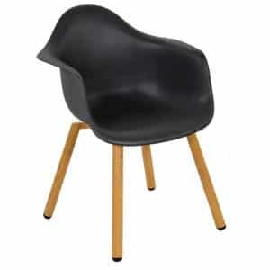 Montreux kunststof tuinstoel zwart Specificaties: Breedte: 62.5 cm Diepte: 44 cm Hoogte: 82.5 cm Kleur stoel: Zwart Kleur frame: Naturel Materiaal stoel: kunststof Materiaal frame: metaal in houtlook Diameter stoelpoten: 38 mm Afwateringsgat: Ja Maxi…