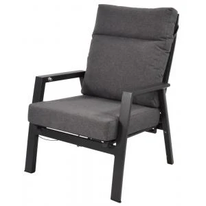 Ohio verstelbare tuinstoel Specificaties: Breedte: 72 cm Diepte: 81 cm Hoogte: 98 cm Armleuning hoogte: 60.5 cm Breedte armleuning: 6 cm Materiaal frame: aluminium Materiaal kussens: textiel 220gr m2 Kleur frame: antraciet Kleur kussens: grijs Dikte …
