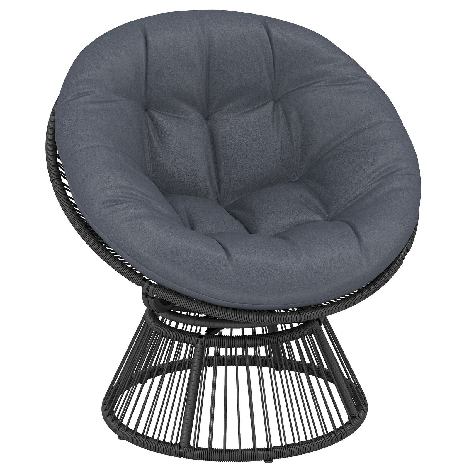 Outsunny Papasan-stoel 360° draaibaar Rieten stoel met Kussen Stalen frame Ronde Loungestoel Grijs