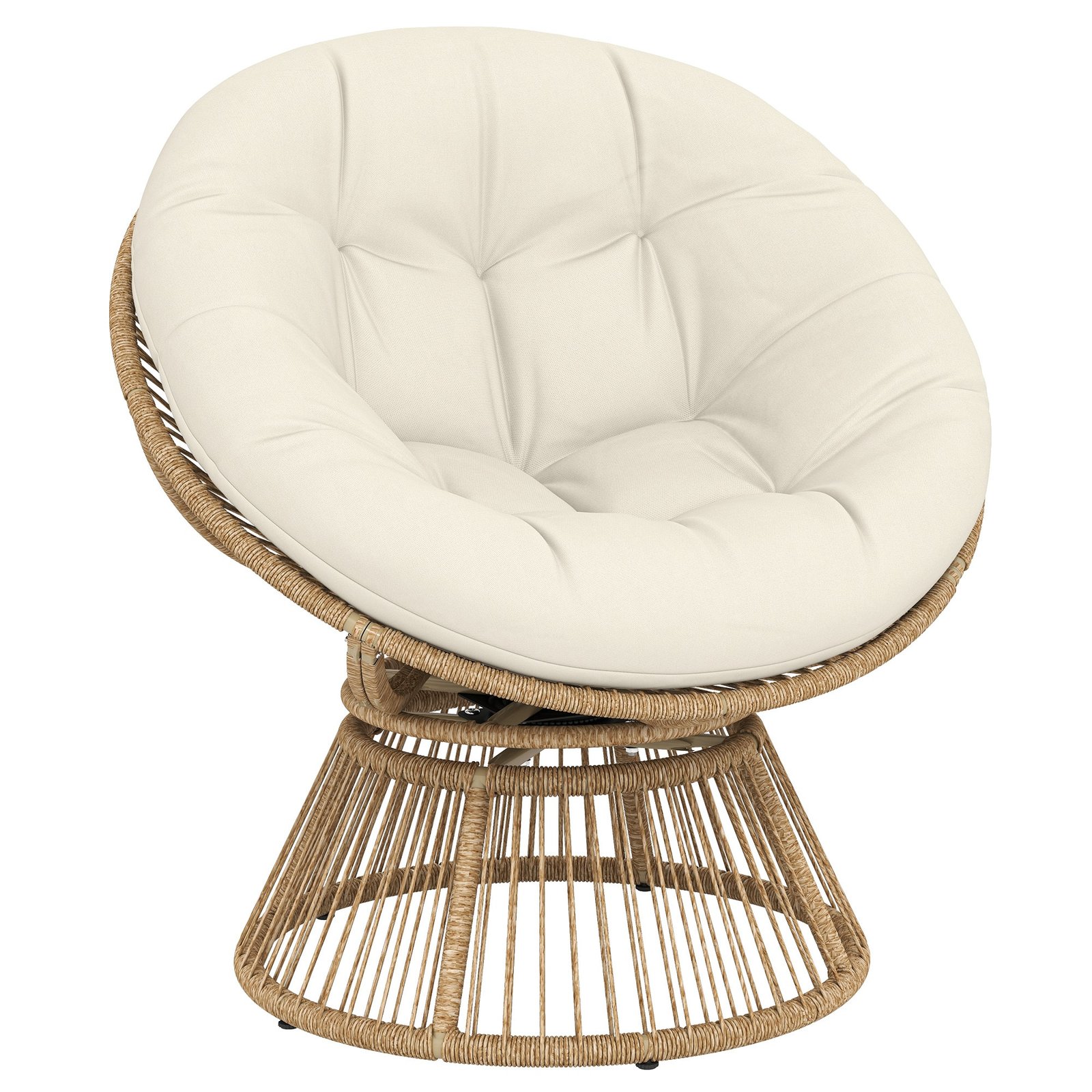 Outsunny Papasan-stoel 360° draaibaar Rotanstoel met Kussen Stalen Frame Loungestoel Crèmewit