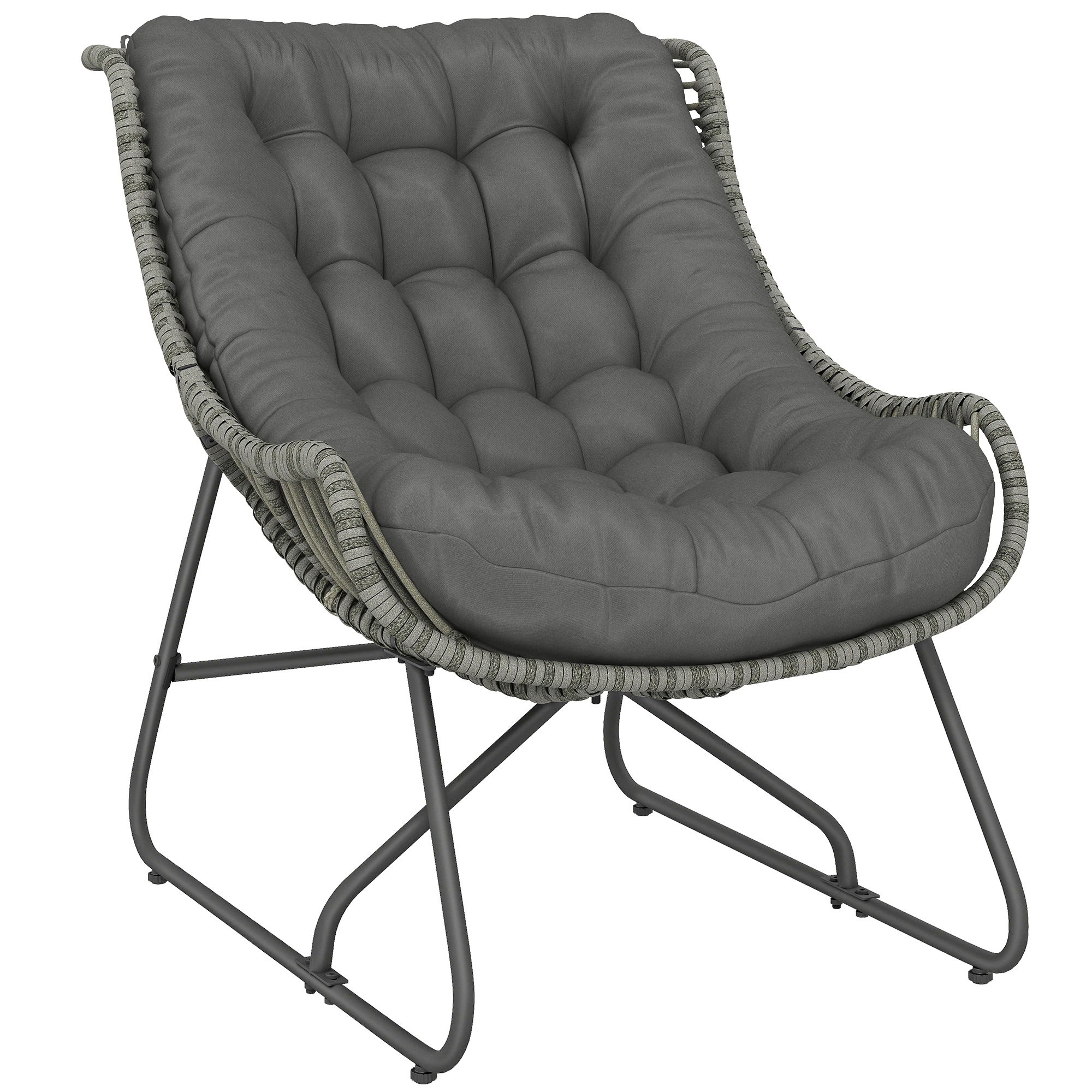 Outsunny Rattanstoel met kussens en banden, gepolsterde outdoor stoel van polyrattan, tot 120 kg
