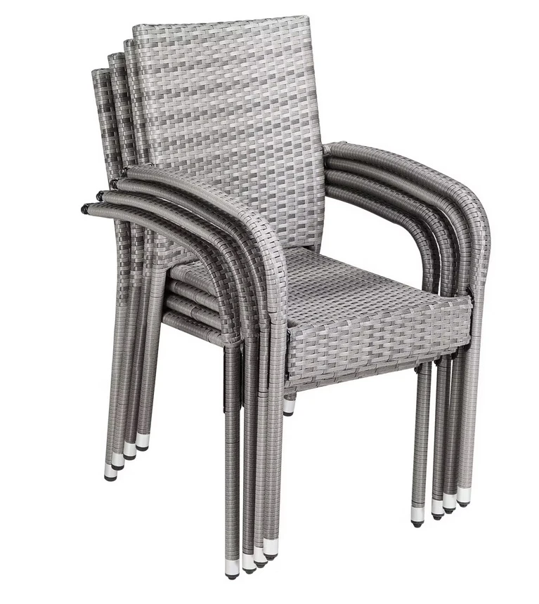 Polyrattan Stapelstoel Comfort Set van 4 kleur Grijs
