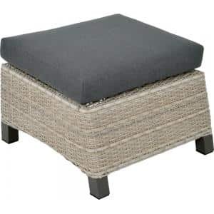 Prato Mountain voetenbankje Specificaties Afmetingen: 61 x 63 x 32 cm Materiaal frame: Aluminium Materiaal afwerking: Wicker 8x2mm / 7×2.2mm / 14×2.3mm Kleur wicker: Beige Kleur kussens: Grijs…