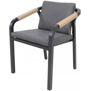 Rimini Stapelstoel aluminium tuinstoel – Set van 4 stuksZwarte stapelstoel met zit- en rugkussenDe robuuste tuinstoel Rimini heeft een lichtgewicht aluminium frame. De rugleuning is afgewerkt met wicker touw en de brede armleuningen zijn daar ook mee…
