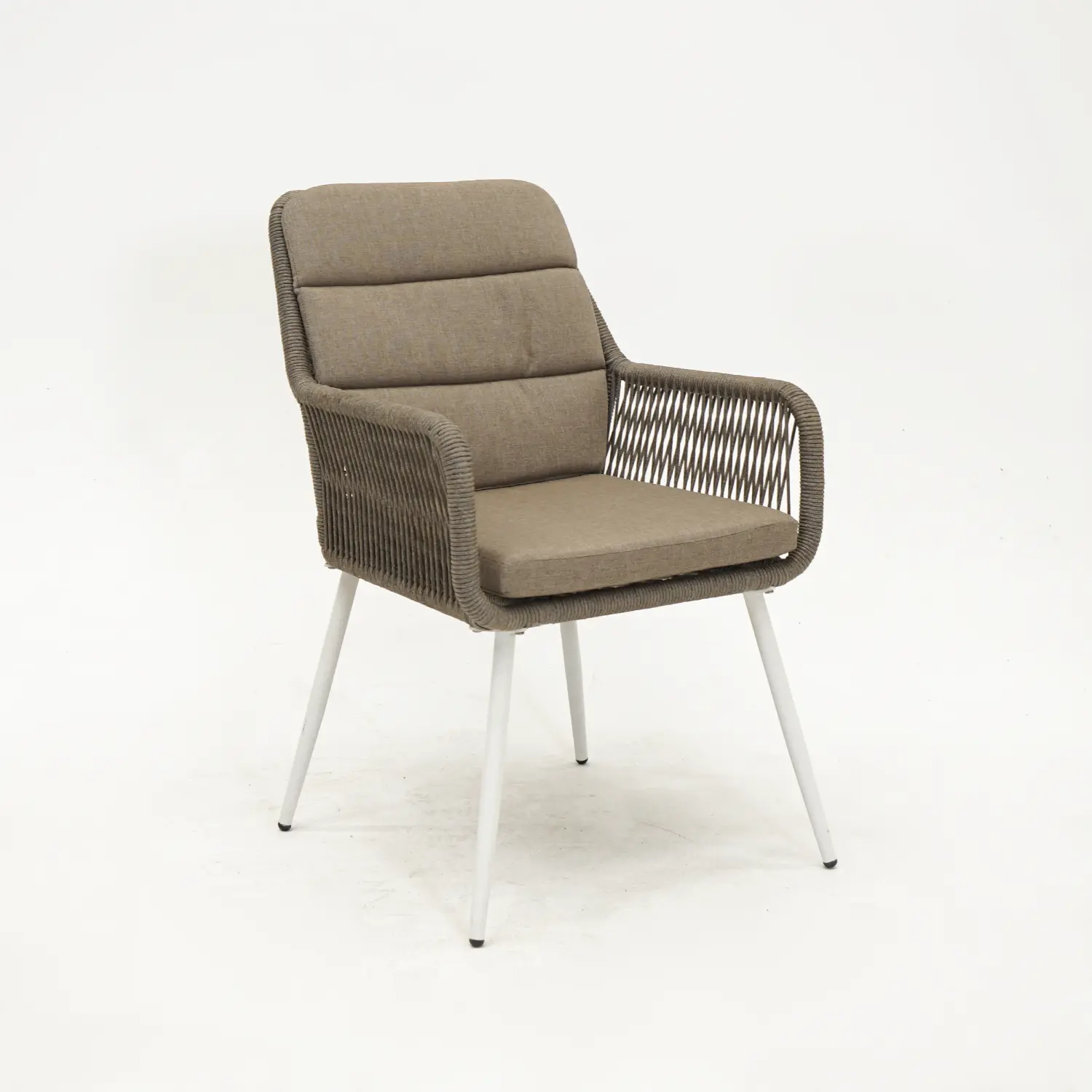 Het frame van deze diningstoel is vervaardigd uit aluminium. Dit materiaal is sterk, licht van gewicht, onderhoudsvriendelijk en weersbestendig. De zitting en rugleuning zijn afgewerkt met rope. Rope is sterk, duurzaam, onderhoudsvriendelijk, kleurvast, waterafstotend, sneldrogend, Uv-bestendig en weersbestendig. Ook de kussens zijn sneldrogend, doordat ze vervaardigd zijn uit Olefin. Olefin is verder sterk, duurzaam, water- en vuilafstotend én weersbestendig. Door deze materialencombinatie kun jij deze stoel het hele jaar door buiten neerzetten.