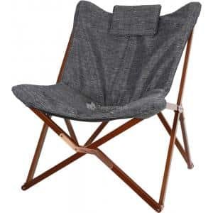 Vlinderstoel hout antraciet De welbekende vlinderstoel in een modern jasje! Door de tactisch geplaatste scharnieren is het frame van deze vlinderstoel zeer compact op te bergen en daardoor ook makkelijk mee te nemen. Het antracietkleurige polyester d…