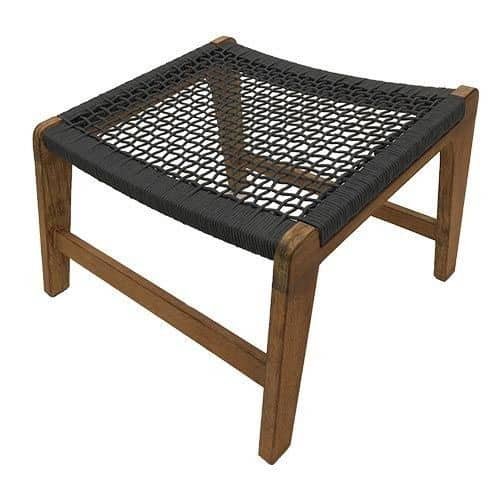 Voetenbank Verton. Voetenbank van teakhout en touw. Hout is nooit honderd procent gaaf, het wordt grijs van kleur en er kunnen scheurtjes, verkleuring en gaatjes ontstaan. Dat is niet gek want hout is immers een natuurproduct. Enkel de verkleuring kan worden voorkomen door het hout 2 keer per jaar te behandelen. Hout maakt tuinmeubelen mooi, sterk, duurzaam en trendy, ondanks de scheurtjes en verkleuringen blijft hout zijn kracht behouden en kan het tegen verschillende weersinvloeden.