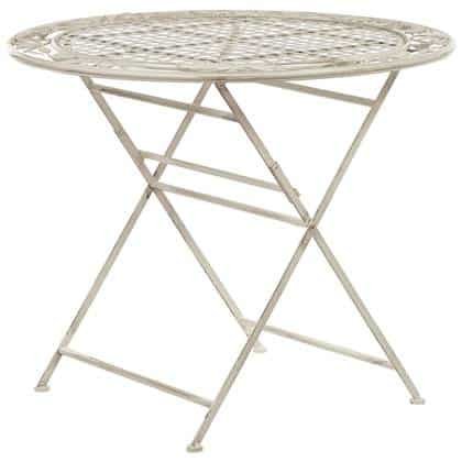 Voeg een vleugje Provençaalse stijl toe aan je balkon of tuin met deze elegante, ronde tafel. De balkontafel is gemaakt van gepoedercoat ijzer en heeft een verweerd effect en een opengewerkt ontwerp met bloemenornamenten. Combineer de bistrotafel me