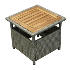 Bijzettafel buiten – Aluminium Wicker Robinahout – Grijs 45 x 40 cmPolyrattan bijzettafel met acaciatafelblad, voor de stijlvolleDe bijzettafel met stalen frame en grijze polyrotan bekleding is stijlvol en praktisch. Het acaciahouten tafelblad is geo…