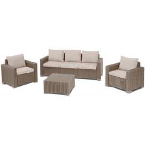 California loungeset 3 zits Cappuccino Deze California tuinset van Allibert is een indrukwekkende eye-catcher voor in uw tuin! Deze luxe en comfortabele loungeset is voorzien van het populaire en welbekende wickerlook en heeft hierdoor een exclusieve…