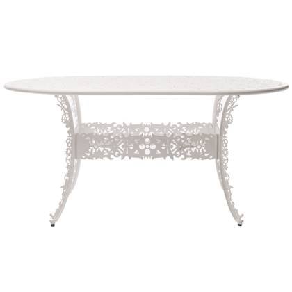 Deze tuintafel is onderdeel van de Industry Garden productserie (onder het merk Seletti). Met een afmeting van (l) 152 x (b) 90 x (h) 74 cm en de kleur Wit is het een verfijnde toevoeging aan elke ruimte.