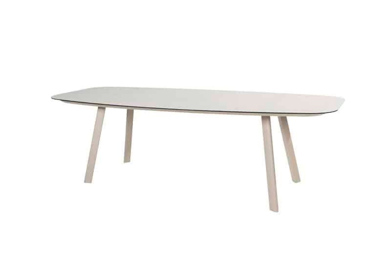 Manolo eettafel latte met geprint keramiek tafelblad 240 x 103 cm. Laat je buitenruimte tot leven komen met de verfijnde stijl en duurzame elegantie van Taste. Creëer een oase van comfort en geniet van buitengewone momenten met onze hoogwaardige buitenproducten. Taste 4SO barrel-vorm Manolo eettafel met geprint keramisch tafelblad en latte aluminium onderstel.
