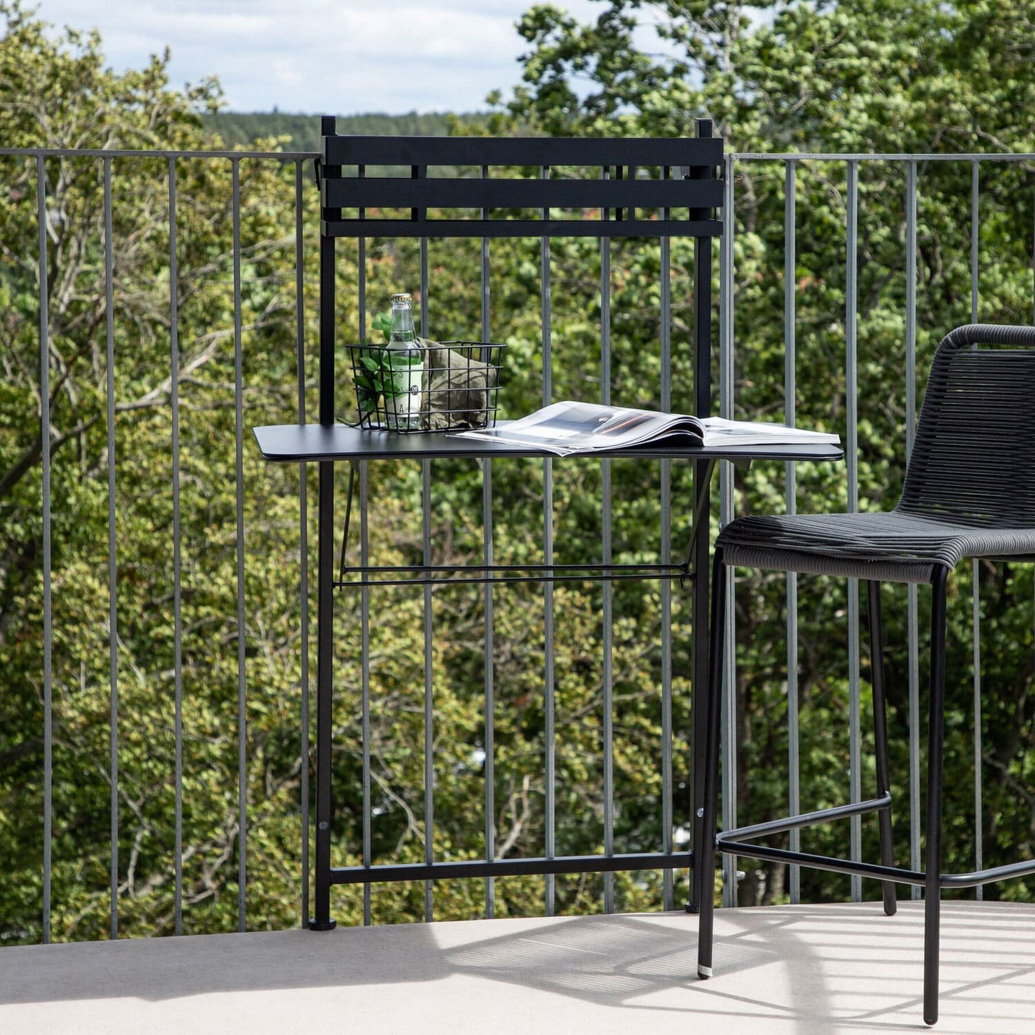 De Jackelin balkontafel is gemaakt van zwart staal en heeft een strak en tijdloos ontwerp dat perfect past in elke balkonomgeving. Wat deze tafel echt onderscheidt is zijn praktische functie: hij kan gemakkelijk langs de balkonreling worden opgeklapt als je extra ruimte nodig hebt voor een kop koffie, een boek of een maaltijd in de buitenlucht.