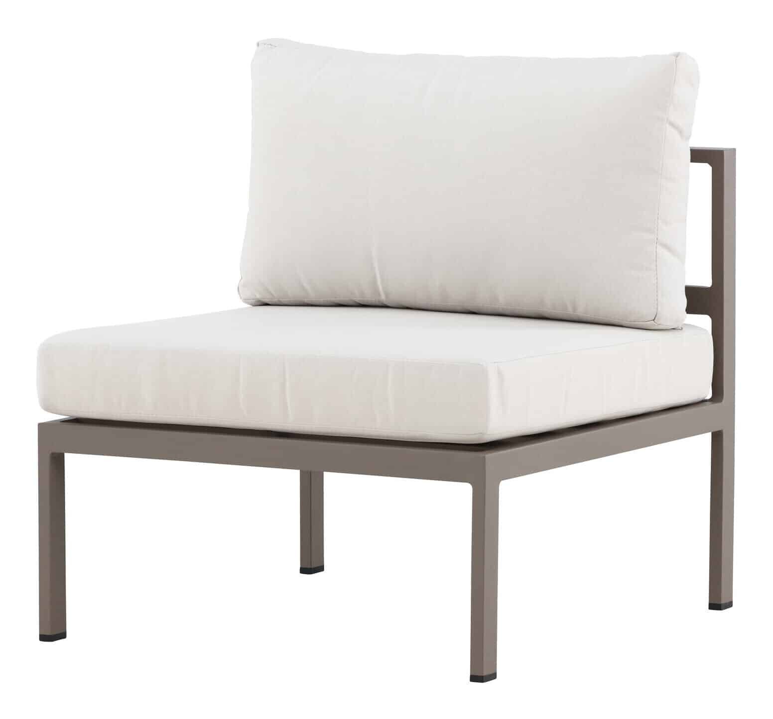 Bouw je droomlounge met de Lasheka zitbankmodule, middendeel. Deze strakke module in een moderne beige kleur is ontworpen om zowel comfort als flexibiliteit te bieden. Met een lichtgewicht en robuust aluminium frame is hij perfect voor buitengebruik en bestand tegen weer en wind. De kussens zijn gemaakt van olefin, een duurzame en weerbestendige stof, en hebben dezelfde harmonieuze beige tint voor een samenhangende en uitnodigende look.