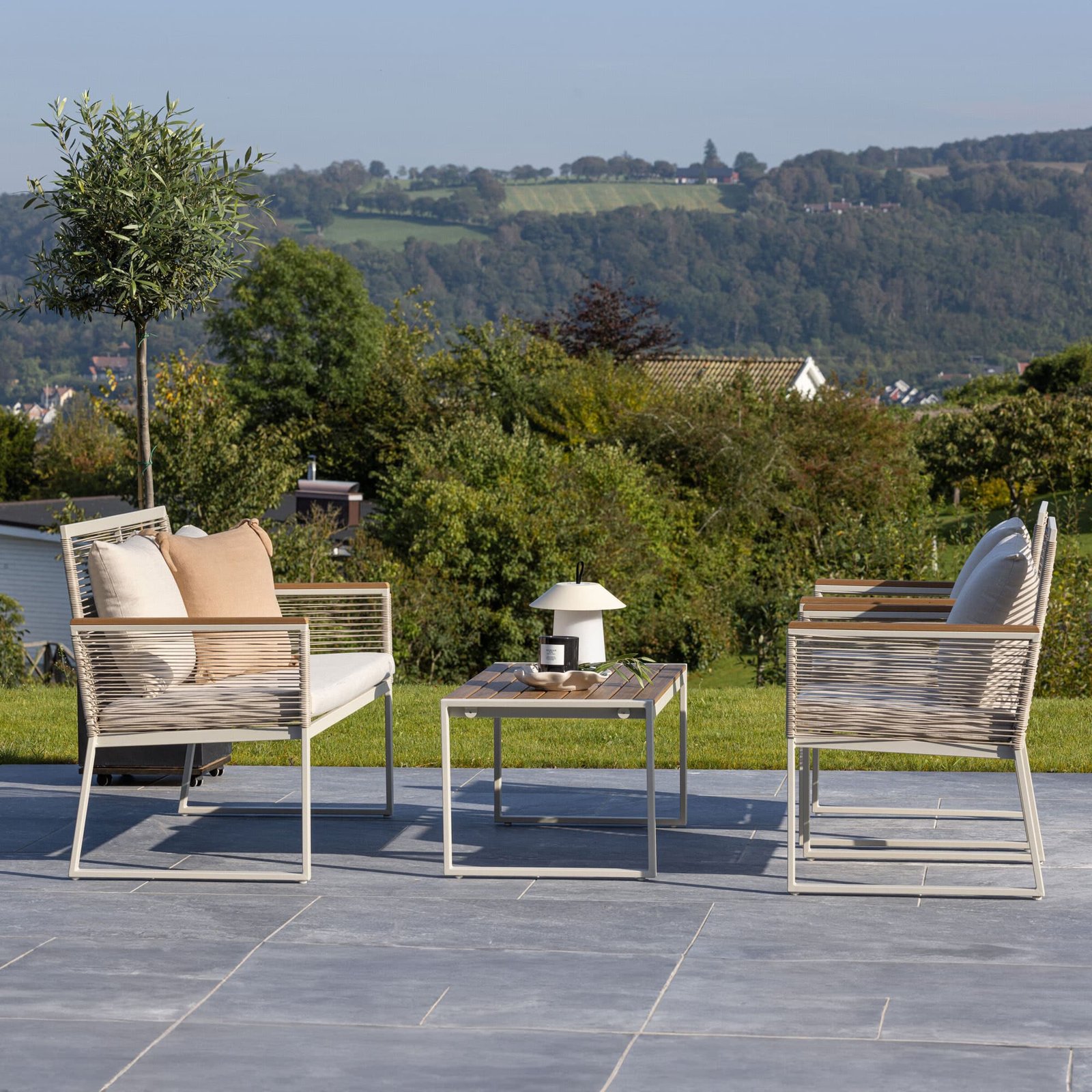 Creëer een ontspannen en uitnodigende sfeer op je terras, balkon of tuin met het Marye bankstel. Of je nu geniet van je ochtendkoffie bij zonsopgang of ’s avonds feestjes geeft, de Marye zal je betrouwbare en stijlvolle metgezel zijn.
