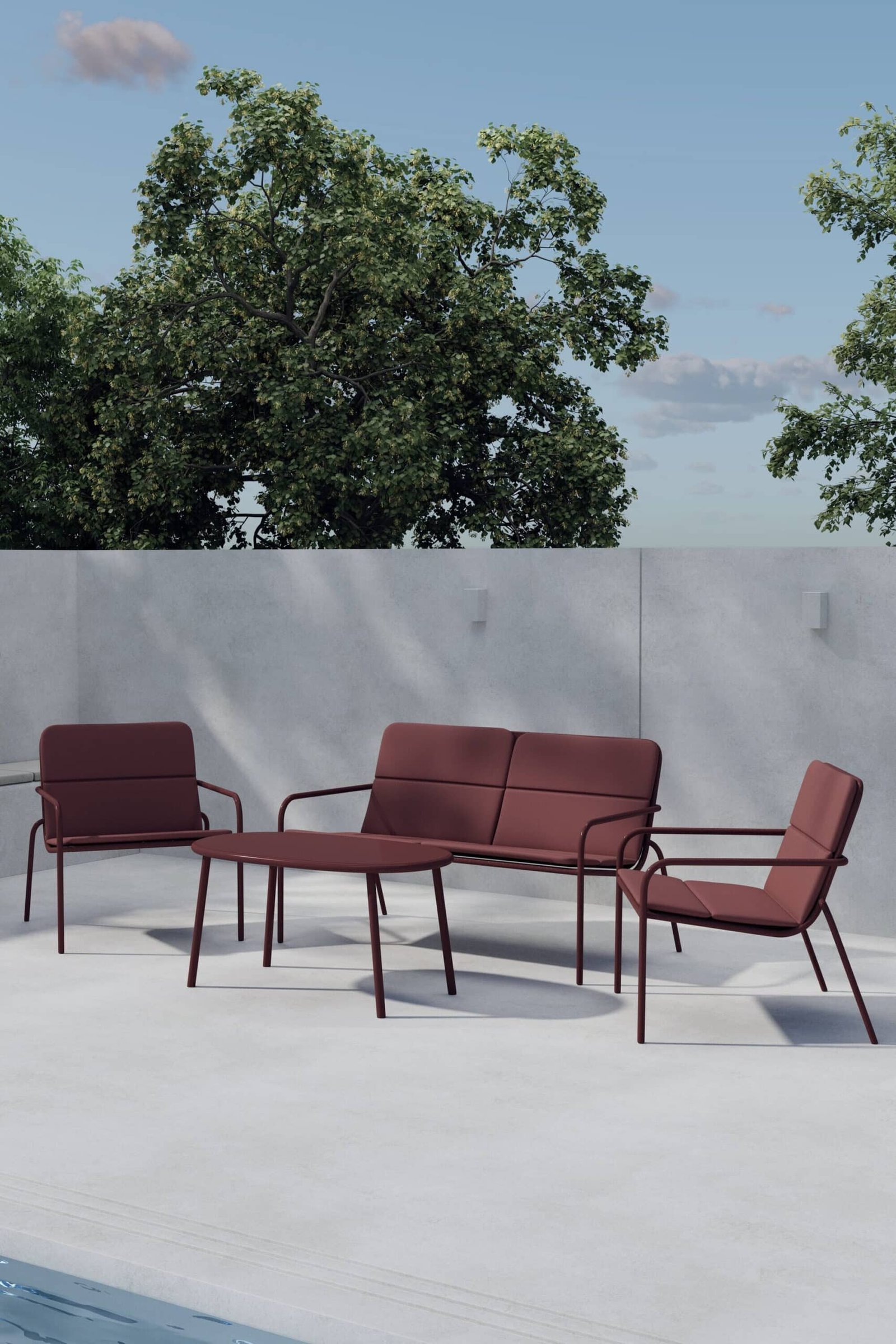 Nohr Loungeset Shayn Met bank, 2 stoelen en tafel – Burgundy