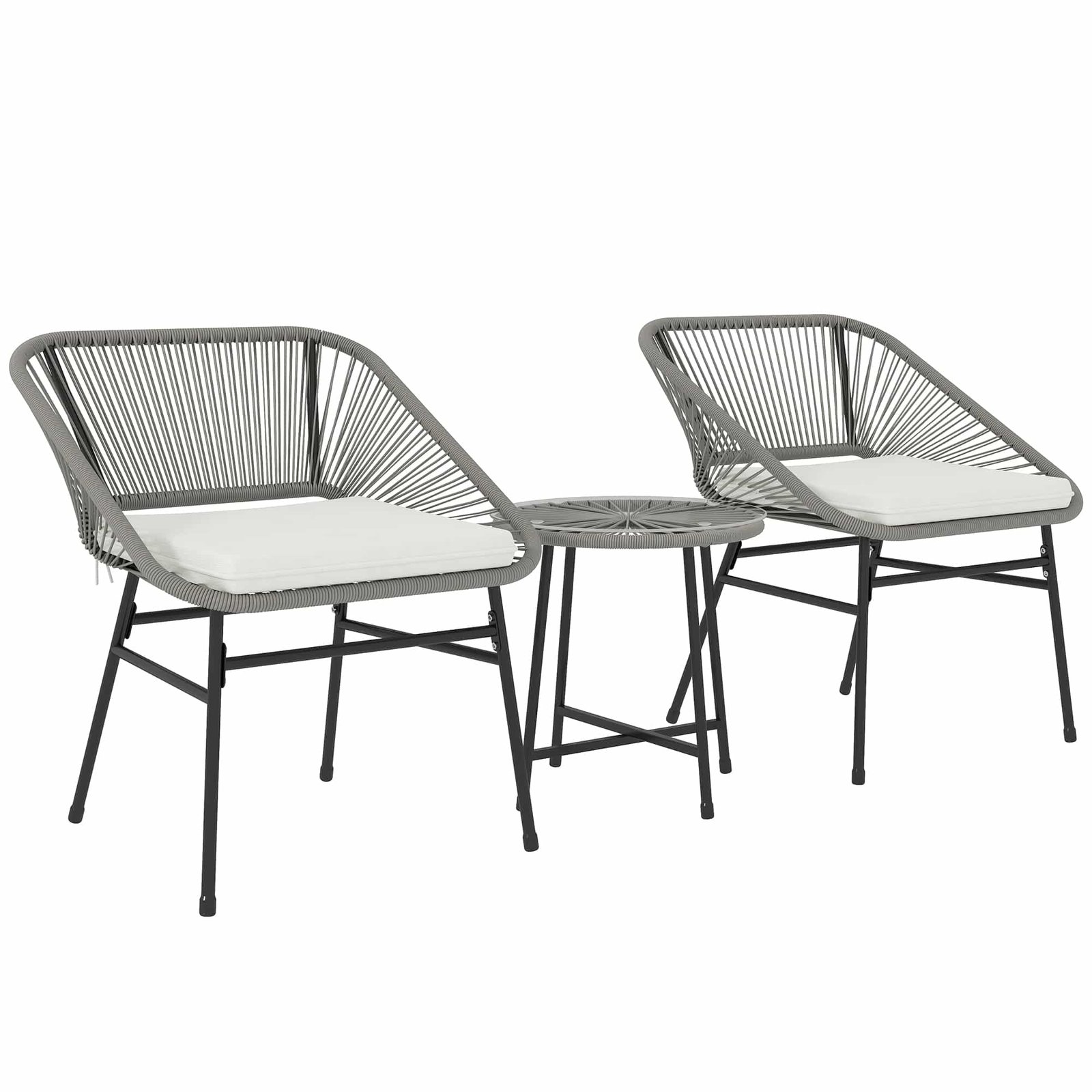 Outsunny 3-Delig Outdoor Meubelset, 1 Tafel, 2 Stoelen, Rotan Vlecht, Stalen Frame, Koffietafel Met Glazen Blad, Donkergrijs