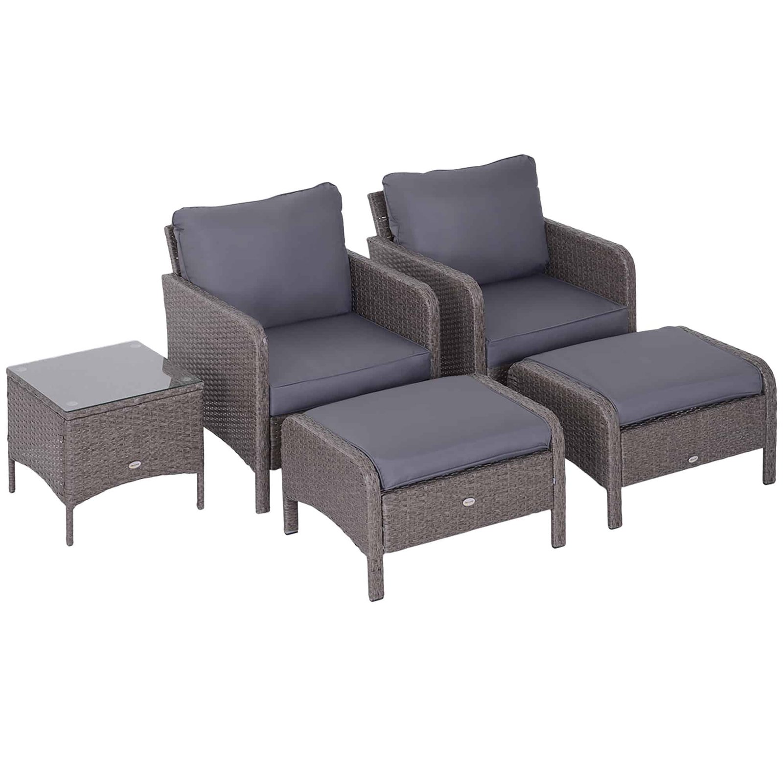 Outsunny 5-delige tuinset van polyrotan, weerbestendig, comfortabele loungeset met kussens, eenvoudig te reinigen, 210 x 70 x 65 cm, Grijs | Aosom.nl