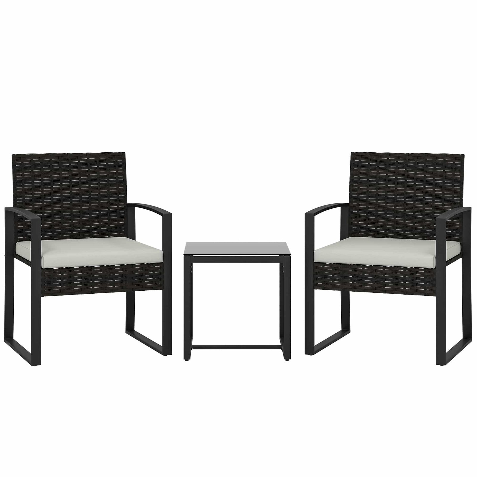 Outsunny Rattan Bistroset, 3-delig tuinmeubelset met 2 tuinstoelen, salontafel, afneembare kussens Crèmewit