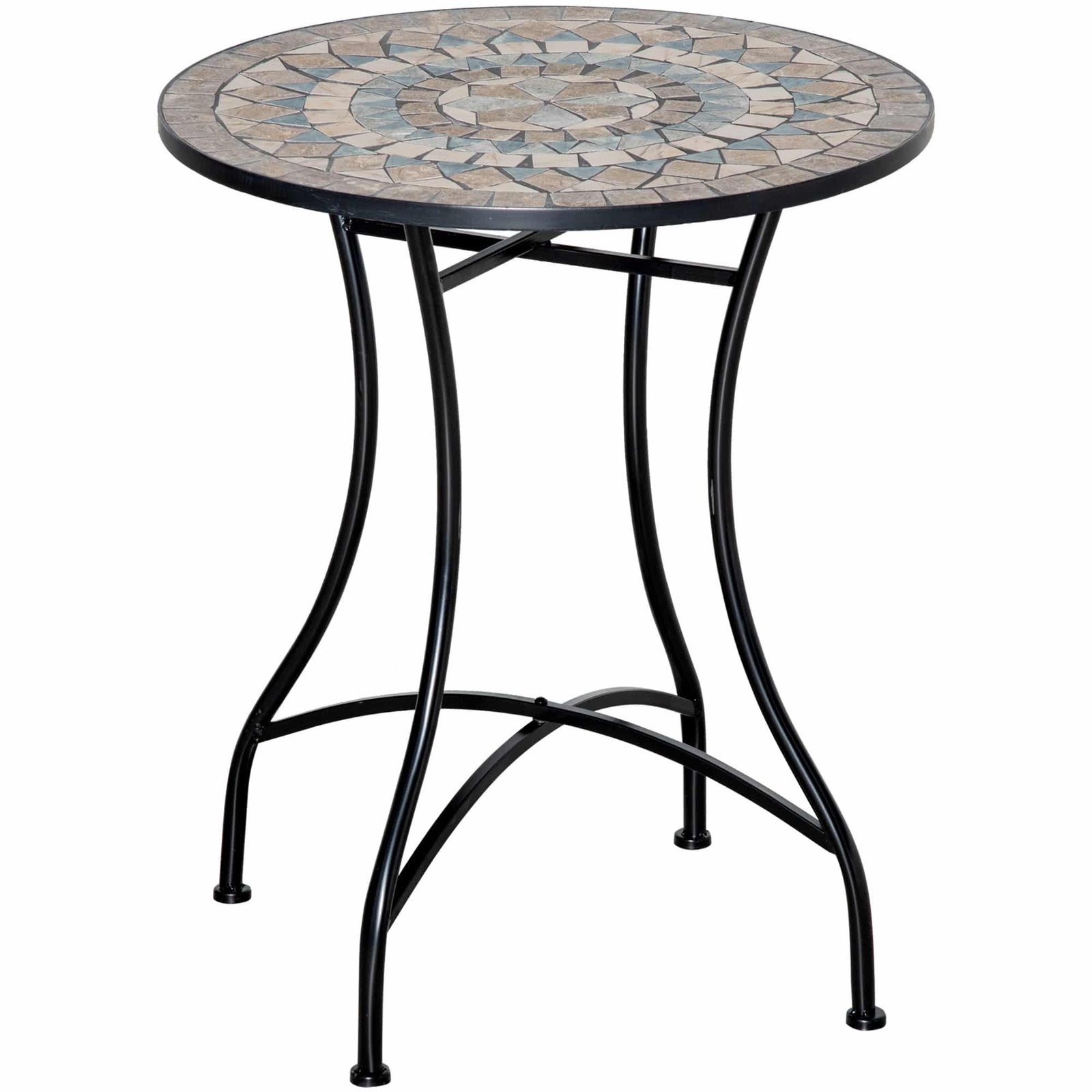 Outsunny Ronde Tuintafel Met Prachtig Keramisch Mozaïekblad en Stevig Metaal Frame Ø60 cm Hoog 71 cm Voor Terras of Balkon | Aosom.nl