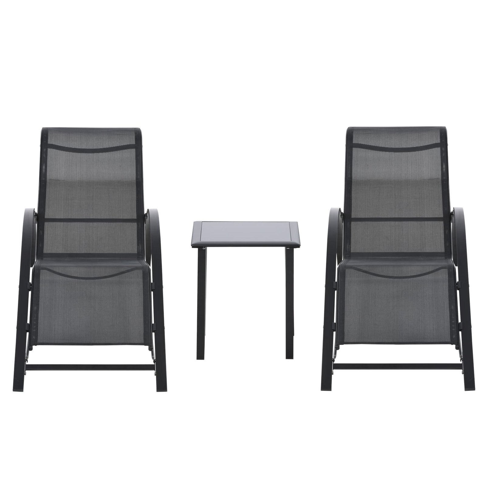 Outsunny tuin loungeset, luxe 2 ligstoelen met bijzettafel, ademende stof, robuust metalen frame, weerbestendig, zwart | Aosom.nl