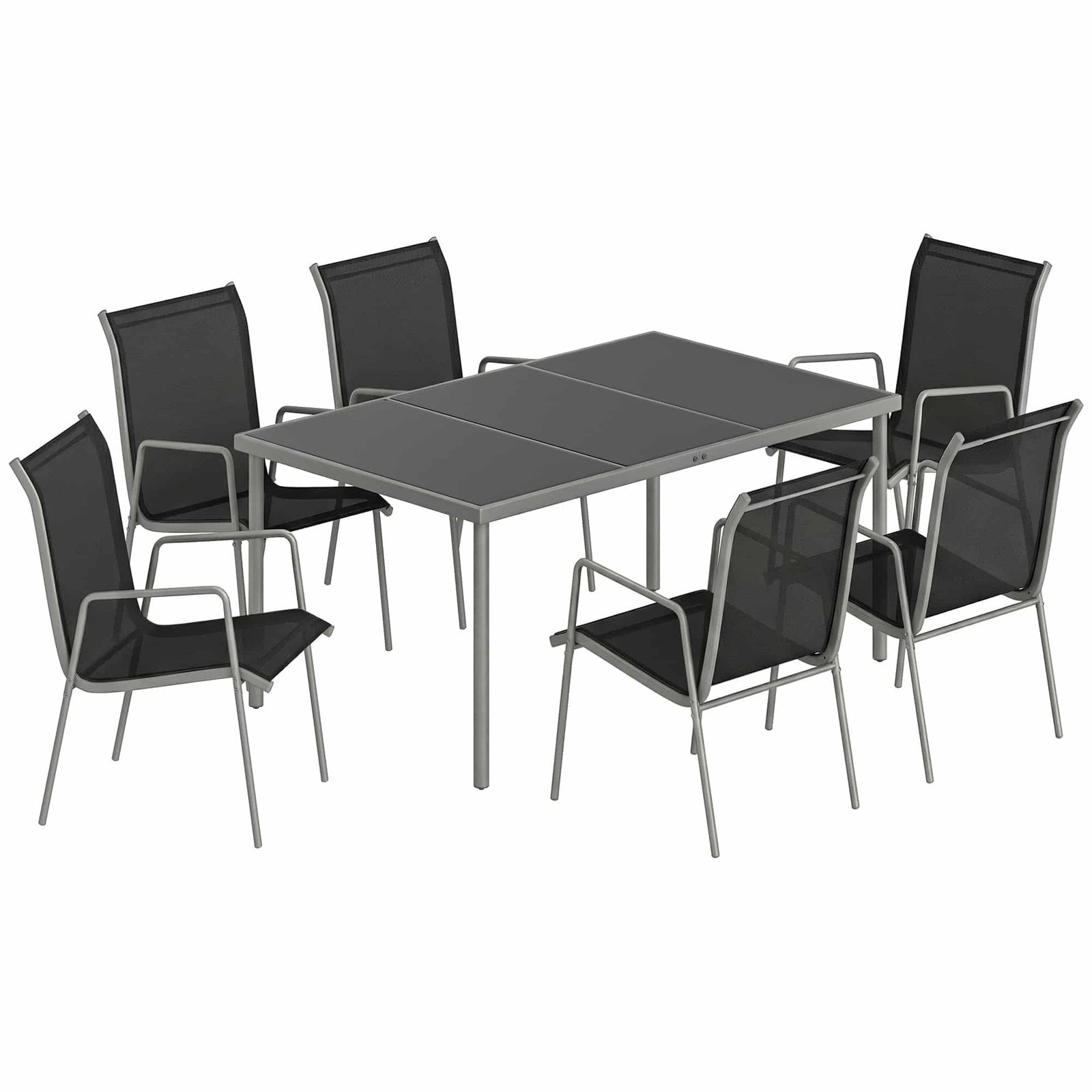 Outsunny Tuinmeubelset 7-delig 150 x 90 cm tafel met 6 ademende stoelen, gehard glazen tafelblad