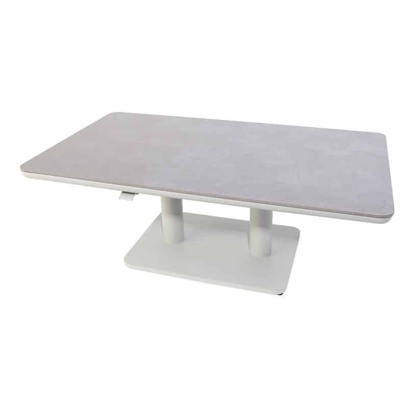 Sedalia verstelbare lounge tafel mist grey. De lounge tafel Sedalia is een robuuste tafel van aluminium met een mooi tafelblad van keramiek. De aluminium constructie geeft de tafel stevigheid en duurzaamheid. Daarnaast is de tafel in hoogte verstelbaar.