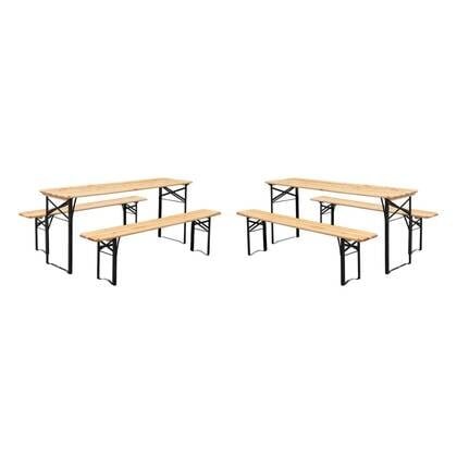 Set van 2 opvouwbare tafels van dennenhout, 2 natuurlijke banken, Bayonne, bistrostijl, 12 plaatsen