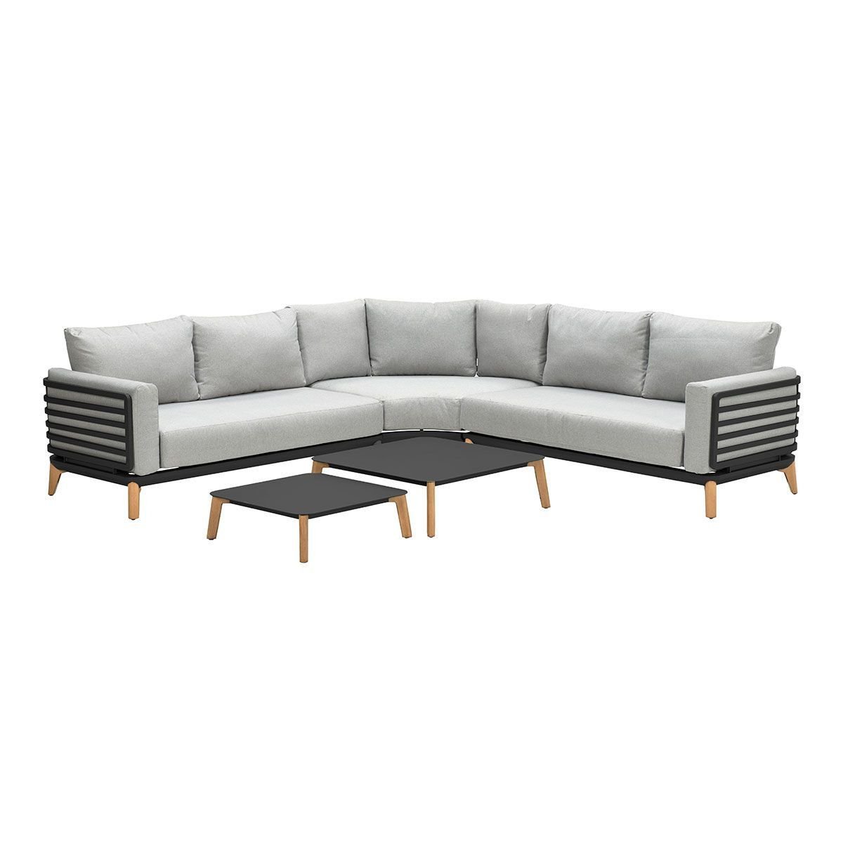 Carmen loungeset 5-dlg c. black/ grijs/ teak look – Garden impressions