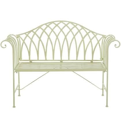 Deze metalen tuinbank biedt je volledig zitcomfort voor 2 personen en straalt comfort en charme uit met de prachtig gebogen stutten op de arm en rugleuningen. De mooie tuinbank van weerbestendig metaal met een gepoedercoat oppervlak is makkelijk sch