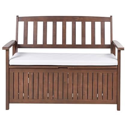 Verfraai de look van je buitenruimte met deze houten bank. Hij is gemaakt van hoogwaardig acaciahout en is gemakkelijk te onderhouden. De bank is uitgerust met een ruim opbergvak, verborgen onder de zitting. Het kan gebruikt worden om overbodig tuin