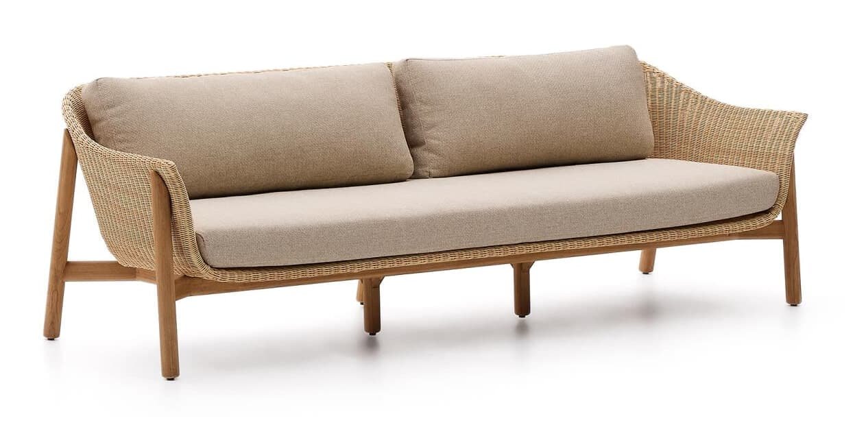 Kave Home 3-zits Tuinbank ‘Galea’ Teakhout en rattan