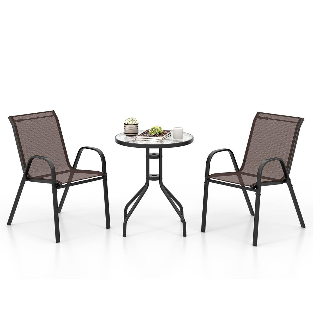 3-delig Balkonmeubelset Bistrotafel met 2 Stapelbare Stoelen Bistroset Balkonset Tuinset Bruin