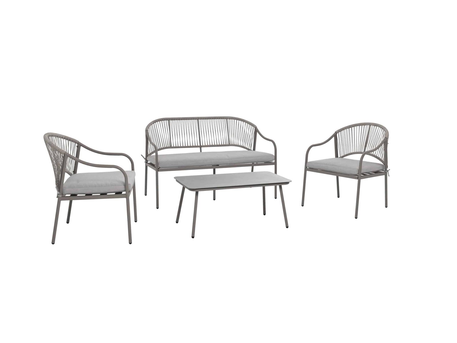 De set bestaat uit een 2-zitsbank van 116 x 78 x 58 cm, 2 fauteuils van 60 x 78 x 58 cm en een tafel van 40 x 88 x 48 cm Het robuuste stalen frame zorgt voor een stabiele basis en een lange levensduur van je meubels Je zit extra lekker op de meegeleverde zitkussens met een dikte van 5 cm De materialen van polyester en staal zijn zeer onderhoudsvriendelijk en makkelijk schoon te maken Door het compacte ontwerp is deze loungeset ideaal voor plekken met beperkte ruimte De combinatie van materialen is speciaal gekozen voor regelmatig gebruik buiten De tafel heeft een praktisch formaat voor je koffie, een hapje of een goed boek Productkenmerken tabletd Serie: Bilbao Set: 4-delig Weerbestendig: ja Materiaal: Staal, polyester, glas Max. belasting: max. 110 kg per zitplaats Afmetingen: 1x 2-zitsbank ca. L 116 × B 78 × H 58 cm 2x fauteuil ca. L 60 × B 78 × H 58 cm 1x tafel ca. L 40 × B 88 × H 48 cm Gewicht: totaal: ca. 24 kg Leveringsomvang: 1x 2-zitsbank; 2x fauteuil; 1x tafel