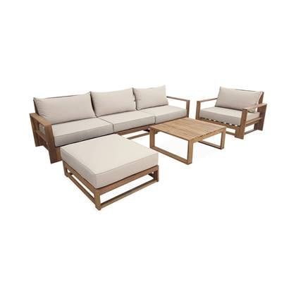 Houten loungeset 5 plaatsen – Mendoza – Beige kussens, acacia, 6 modueles, design