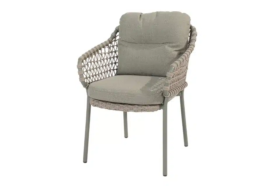 Introductie 4 Seasons Outdoor | Jura Stapelstoel van 4 Seasons OutdoorHet 4 Seasons Outdoor | Jura Stapelstoel van Fonteyn brengt verfijnde elegantie naar je buitenruimte. Deze prachtige stapelstoel combineert een stevig roestvrij stalen frame met luxueus rotan vlechtwerk, waardoor je geniet van duurzame kwaliteit en tijdloze stijl. Het grijze frame vormt een elegante basis voor de olive rope kussens die zorgen voor optimaal zitcomfort tijdens lange zomeravonden op je terras.nnTijdloze elegantie voor jouw buitenruimteDeze prachtige tuinstoel straalt verfijnde luxe uit door de harmonieuze combinatie van moderne vormgeving en natuurlijke materialen. Het rotan vlechtwerk aan de zijkanten geeft de stoel een warme, uitnodigende uitstraling die perfect past bij zowel hedendaagse als klassieke tuininrichtingen. De neutrale kleurstelling met grijstinten en olive accenten creëert een sophisticated sfeer die je buitenruimte direct naar een hoger niveau tilt.nnSlim ontworpen voor maximaal comfortDankzij het doordachte stapelbare ontwerp biedt deze stoel praktische functionaliteit terwijl comfort behouden blijft. Het roestvrije stalen frame garandeert stabiele ondersteuning, terwijl de twee meegeleverde kussens zorgen voor optimale zithouding. Het rotan vlechtwerk is vakkundig verwerkt en biedt ademende eigenschappen, waardoor je ook tijdens warme dagen comfortabel blijft zitten.nnEenvoudig opbergen en onderhoudenHet stapelbare karakter van de Jura stoel maakt opslag bijzonder eenvoudig, vooral handig tijdens wintermaanden of bij beperkte opslagruimte. Door meerdere stoelen op elkaar te stapelen bespaar je kostbare ruimte in je schuur of garage. Het roestvrije staal en rotan zijn beide onderhoudsarm, waardoor je kostbare tijd bespaart aan reiniging en onderhoud van je tuinmeubilair.nnInvestering in langdurige kwaliteitDoor te kiezen voor de Jura stapelstoel investeer je in meubilair dat jarenlang dienst doet met behoud van kwaliteit. Het roestvrije stalen frame behoudt zijn sterkte en uitstraling door alle seizoenen heen, terwijl het rotan vlechtwerk zijn natuurlijke schoonheid bewaart. Deze duurzame materiaalcombinatie betekent dat je lange tijd kunt genieten van je investering met vervangingskosten die uitblijven.nnZekerheid van het productDe Jura stapelstoel van 4 Seasons Outdoor staat garant voor blijvende kwaliteit en betrouwbaarheid. Het roestvrije stalen frame en het vakkundig verwerkte rotan zijn speciaal geselecteerd om jarenlang hun oorspronkelijke eigenschappen te behouden. Deze stoel blijft seizoen na seizoen presteren op het hoogste niveau, waardoor je kunt rekenen op consistente kwaliteit en comfort.nnShowroom in UddelBezoek de grootste tuinmeubelshowroom van Europa in Uddel en ontdek de Jura stapelstoel van 4 Seasons Outdoor op 35.000m2 inspiratie. Hier kun je de stapelstoel van Fonteyn zelf testen en ervaren hoe het zitcomfort en de kwaliteit zijn. De intern opgeleide experts van Fonteyn adviseren je graag over de beste keuzes voor jouw buitenruimte. Met het brede assortiment, grote voorraad en snelle levering vind je alles wat je zoekt. Ben je al overtuigd? Bestel dan direct via de webshop van Fonteyn.n