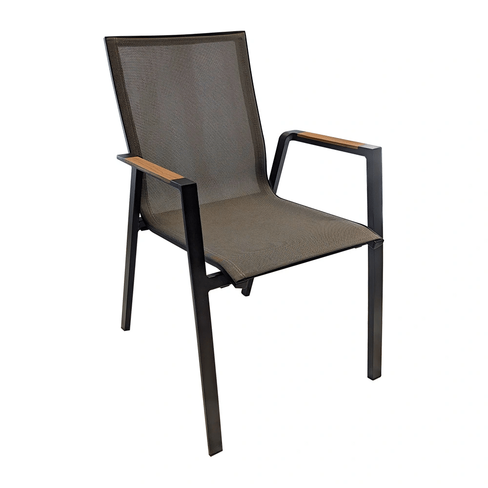 Ontworpen voor comfort en uitstraling: de Trestino Altona Tuinstoel – Antraciet in antraciet kleurstelling met een basis van textileen en teak en aluminium. Ideaal voor wie stijl en comfort wil combineren in één buitenmeubel. De afmetingen zijn ca. 65 × 56 × 87 cm (L × B × H), ideaal afgestemd op praktisch buitengebruik.