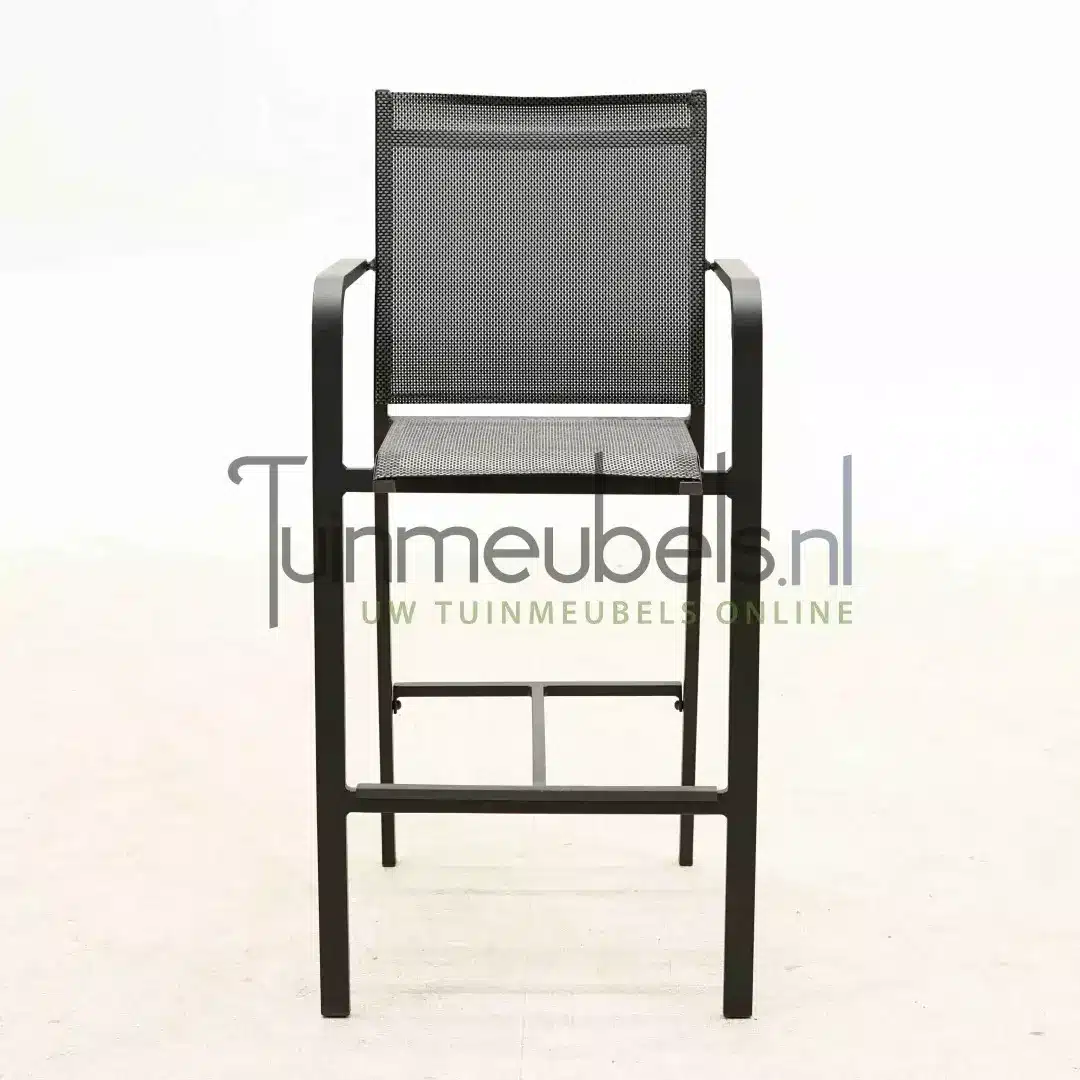 Het frame van deze barstoel is gemaakt uit gepoedercoat aluminium. Aluminium is een sterk en onderhoudsvriendelijk materiaal dat tevens licht van gewicht en weersbestendig is. Door de poedercoating is er nog een extra beschermlaag aangebracht tegen krassen, stoten, weer en wind. De bekleding is vervaardigd uit textileen. Textileen is een geweven polyester met een hoog zitcomfort. Daarnaast is dit materiaal sterk, onderhoudsvriendelijk, kleurvast, waterafstotend, sneldrogend, vuilwerend, Uv-bestendig, vorstbestendig en weersbestendig. Door deze combinatie van materialen kun jij deze barstoel het hele jaar door buiten laten staan.
