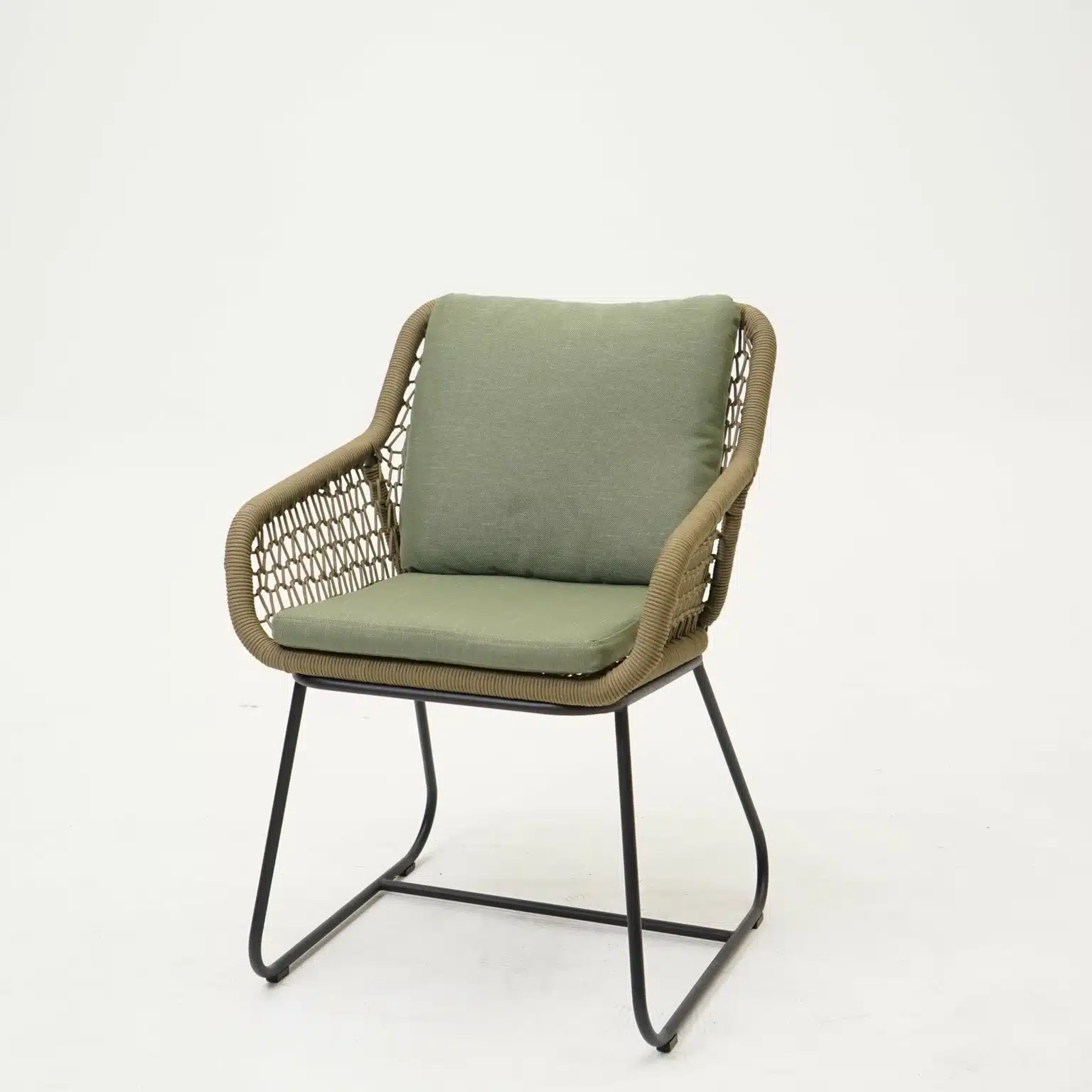 Dining Tuinstoel Portofino Olijf Groen met Groene Kussens Touw Stoel Buiten Tuin