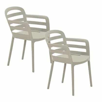 De Mira tuinstoel is volledig gemaakt van sterk kunststof. Dit materiaal is weersbestendig en gemakkelijk schoon te maken. Afmeting: 59 x 56,5 x 80 cm. Set van 2 stuks