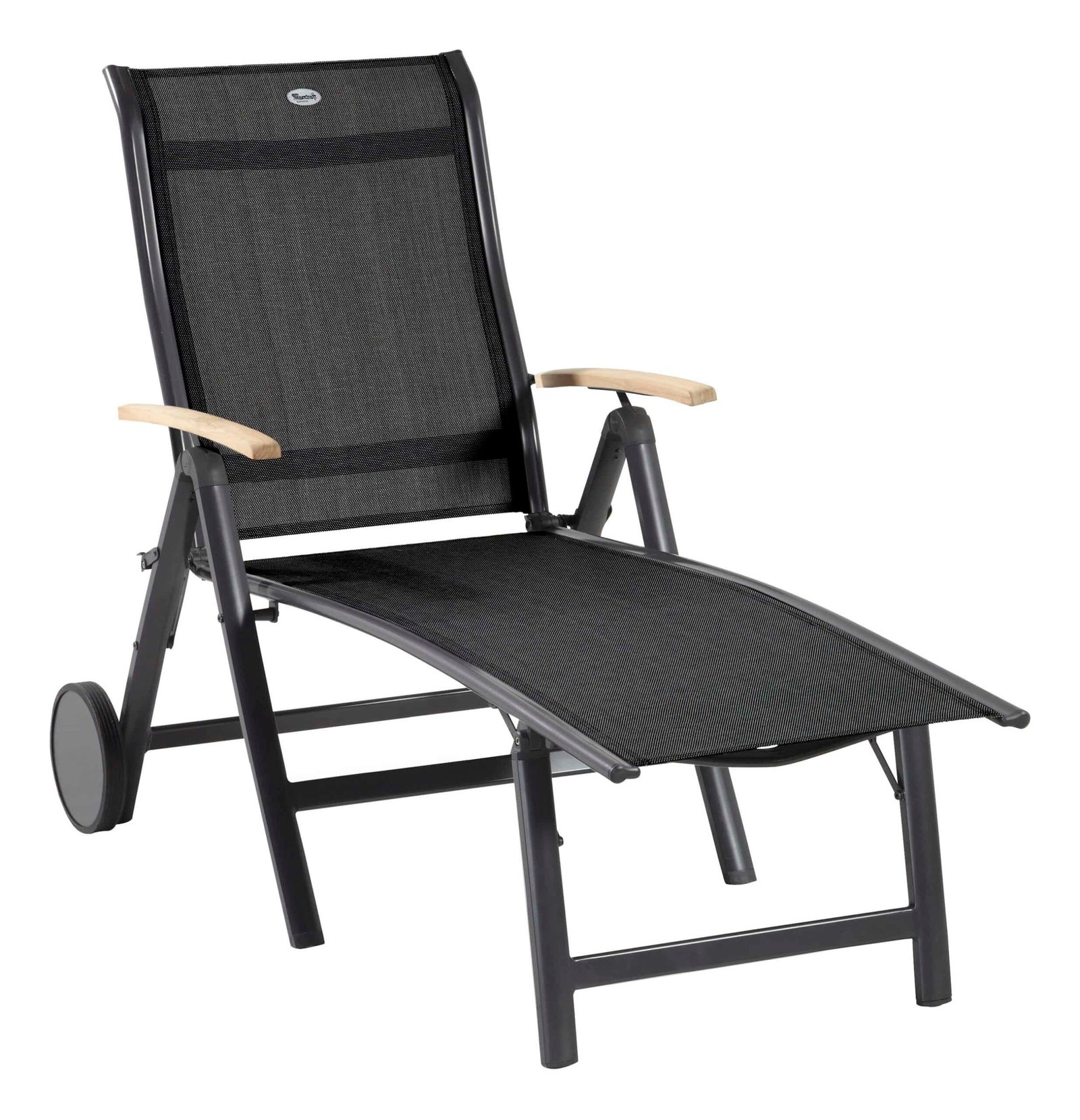 Materiaal: Aluminium, textileen en teakhouten armleuning
