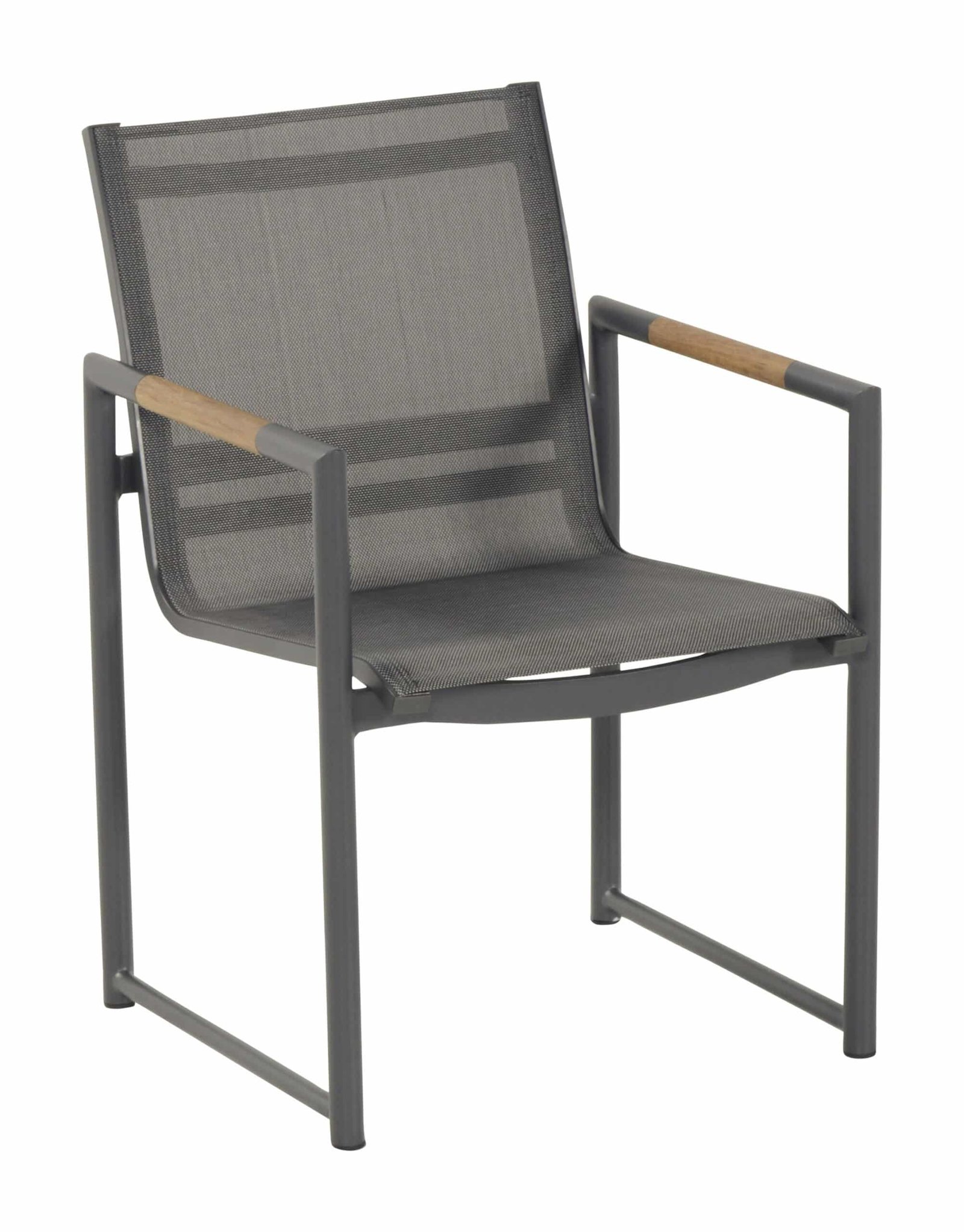 Materiaal: Aluminium frame, textileen en teakhouten armleuning