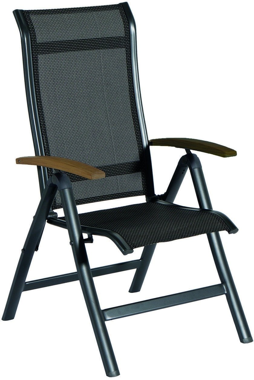 * Materiaal: Aluminium, textileen en teakhouten armleuning