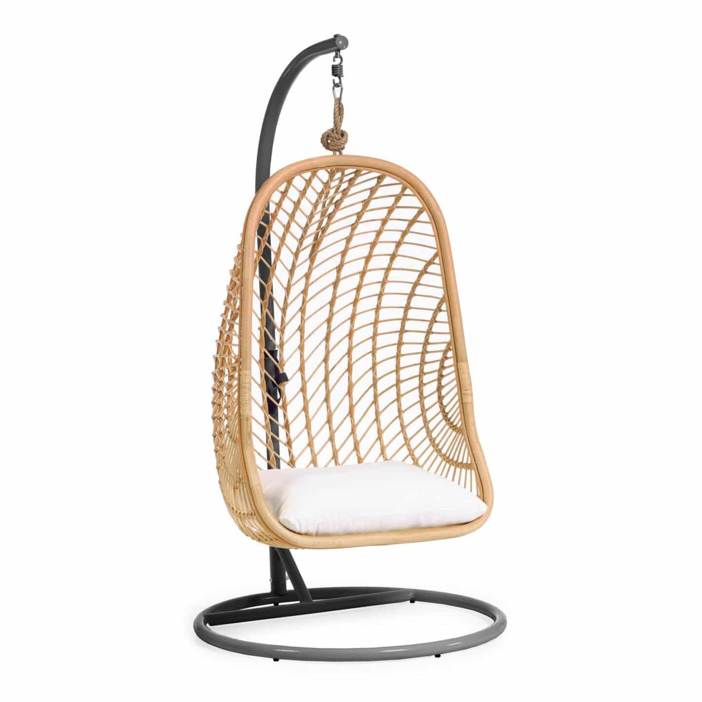 Kave Home Hangstoel ‘Ekaterina’ Met standaard, Rotan, kleur Naturel/Donkergrijs