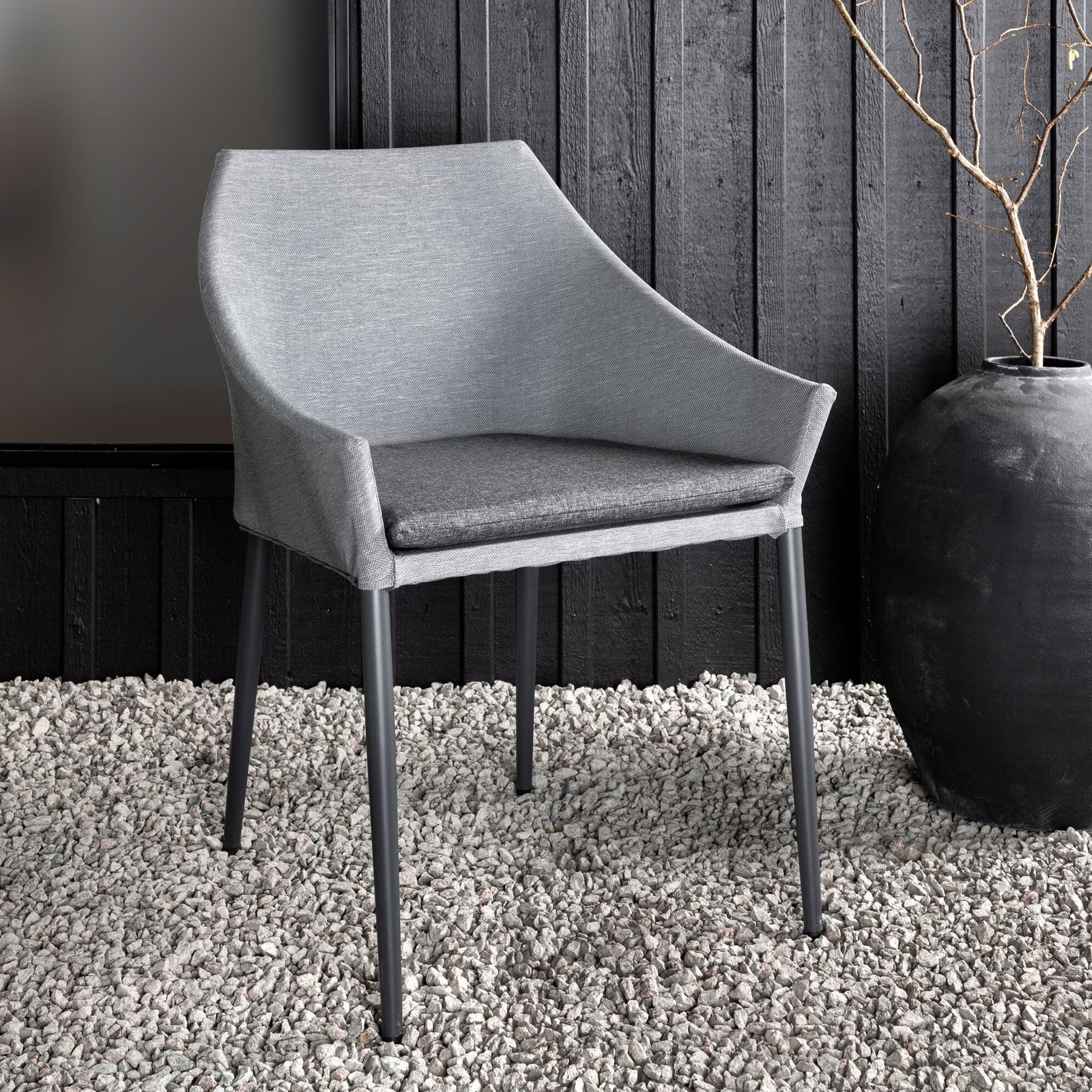 Een smaakvolle en comfortabele stoel in grijs met zwarte poten die perfect past bij alle etentjes op het balkon of terras. Combineer met je favoriete tafel en je bent klaar! Felica heeft een tijdloos ontwerp met neutrale kleuren waardoor de stoel lang gebruikt kan worden.