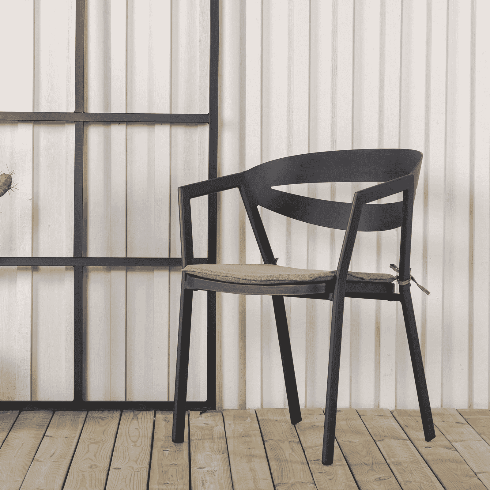 Split eetkamerstoel heeft een uniek ontwerp met geïntegreerde armleuningen – perfect om deze zomer een persoonlijk tintje aan je terras te geven! Gemaakt van zwart gepoedercoat aluminium, volg ons onderhoudsadvies op en de stoelen gaan lang mee. Combineer met een nette eettafel zodat je een complete eetset krijgt die net zo goed in de buitenruimte als in de tuin past. De stoel is stapelbaar.