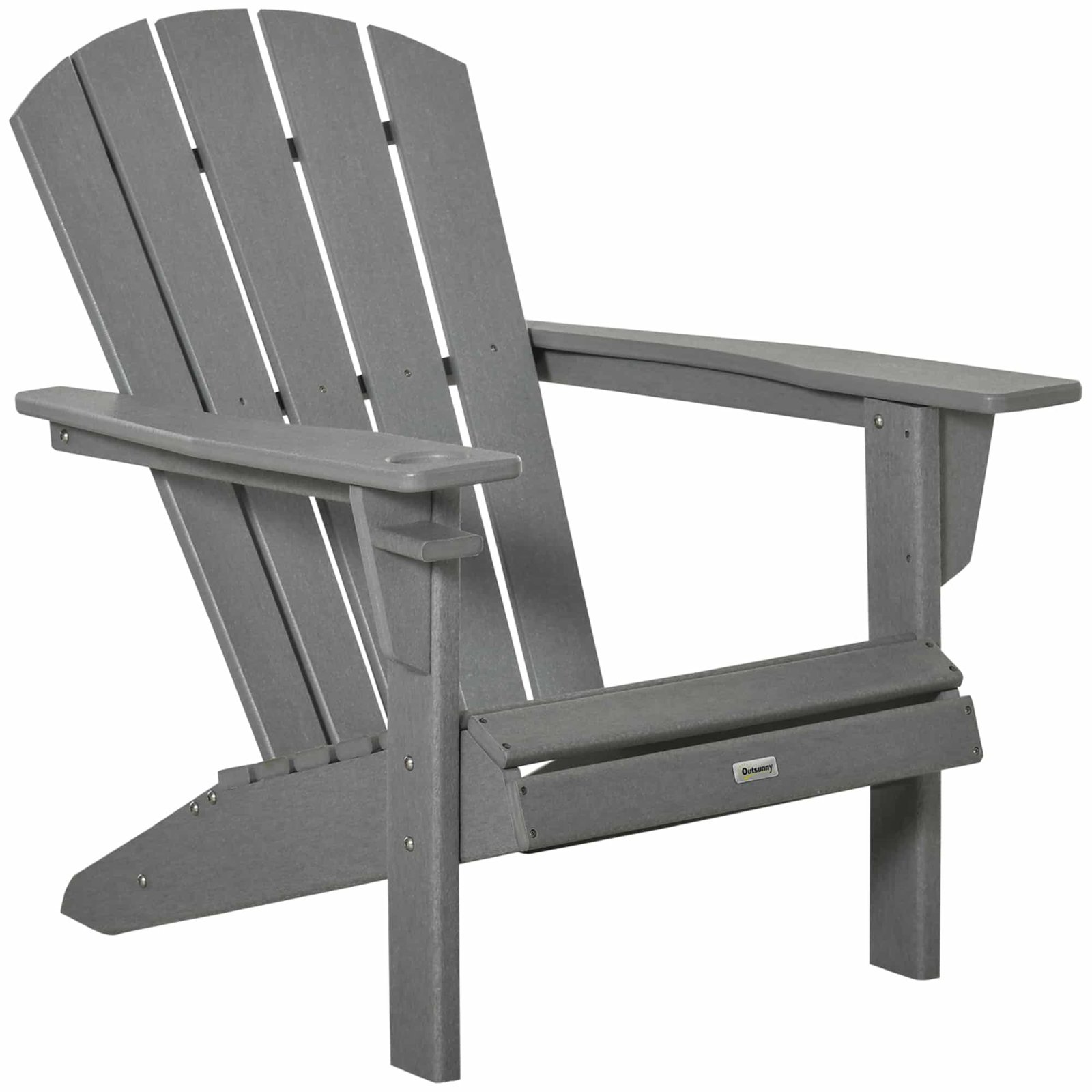 Outsunny Adirondack Stoel, Kunststof 75x87x90cm, HDPE Tuinstoel Met Bekerhouder, Brede zitting ergonomisch ontworpen, Weerbestendig, grijs | Aosom.nl