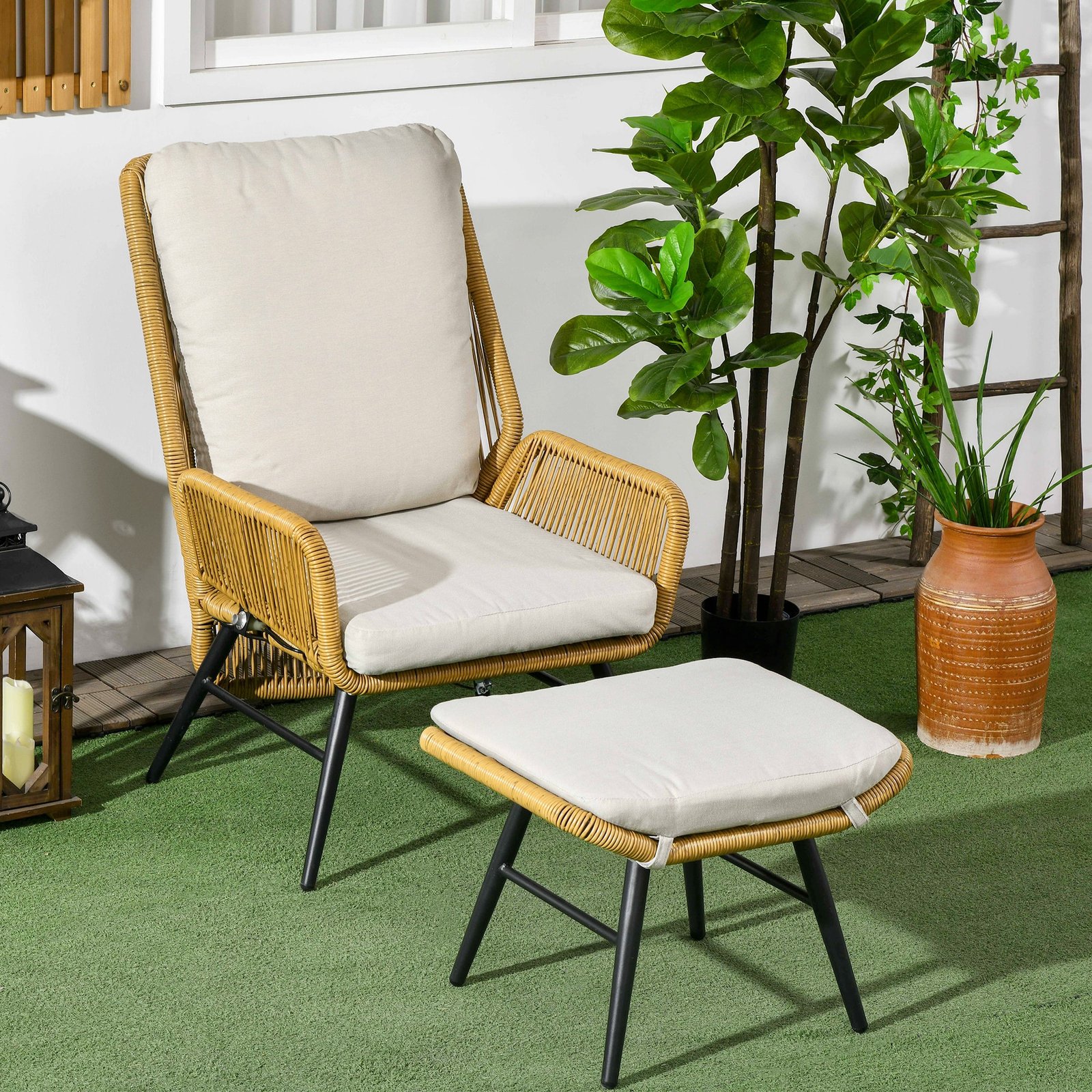 Outsunny polyrattan tuinstoel met voetenbank, verstelbare leuning, weerbestendig, comfortabel, 70 x 70 x 90 cm, lichtbruin, grijs, zwart | Aosom.nl
