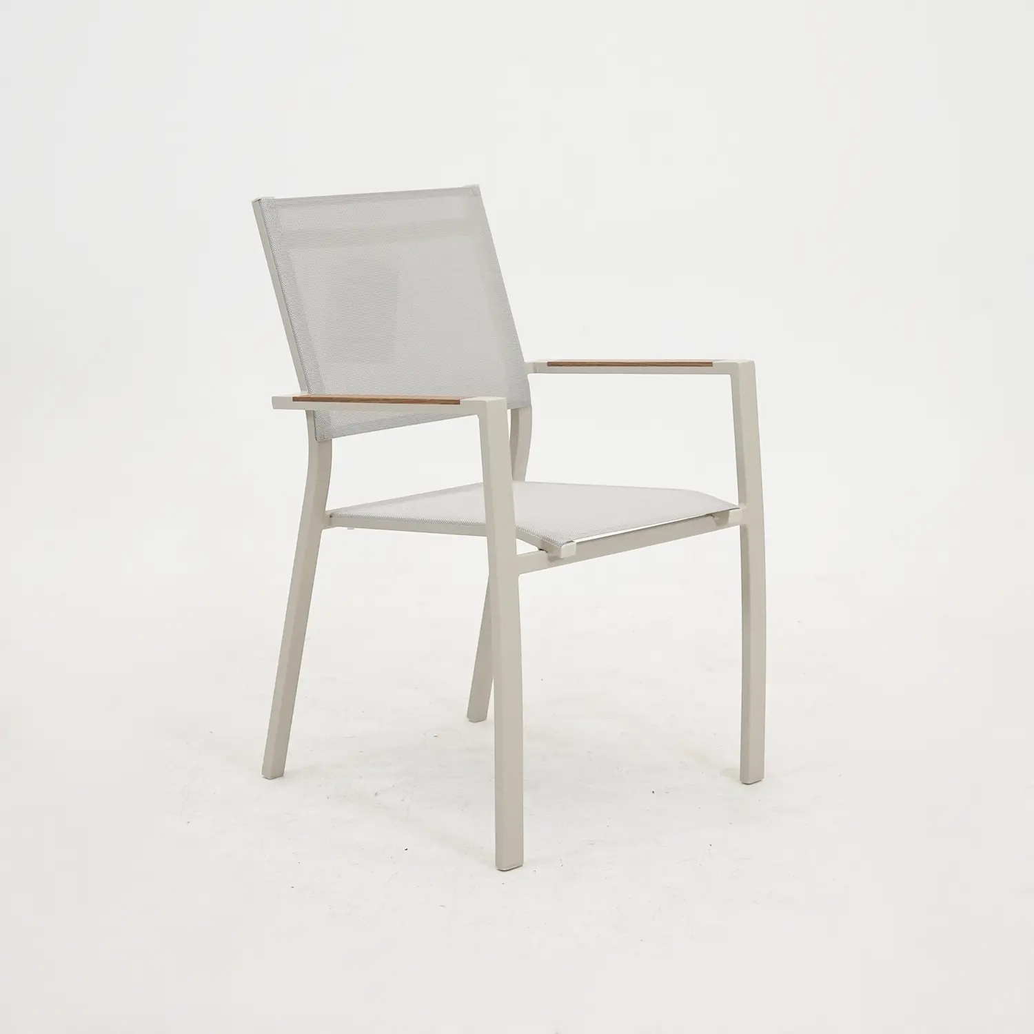 De stoel beschikt over een gepoedercoat aluminium frame. Dit is een sterk, onderhoudsvriendelijk en weersbestendig materiaal dat tevens licht van gewicht is en een lange levensduur heeft. Door de poedercoating beschikt het aluminium zelfs nog over een extra beschermlaag, waardoor het materiaal nog langer meegaat. De armleggers zijn afgewerkt met teakhout en dit materiaal zorgt ervoor dat de armleuningen in de volle zon niet te warm worden. Verder zijn de zitting en rugleuning vervaardigd uit textileen. Textileen is sterk, onderhoudsvriendelijk, kleurvast, vuilwerend, waterafstotend, sneldrogend en weersbestendig. Hierdoor kun je deze stoel het hele jaar door buiten in de tuin laten staan.